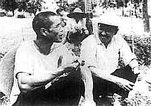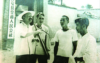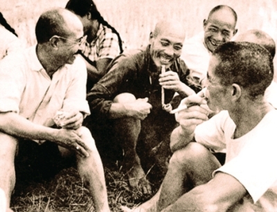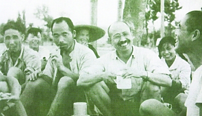 上图均为柳青与皇甫村村民。其中,左下为柳青(右)与《创业史》一书中梁生宝的人物原型交谈。