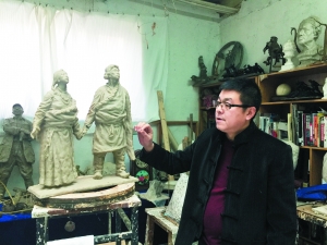 在刘君工作室的雕塑架上,一对藏族男女牵手遥望远方的小件雕塑作品映入记者眼帘。“这件作品就是《高原阳光》的原稿,铜件已经被中国美术馆收藏了。”刘君说。