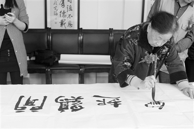 正在写字的周玉清。