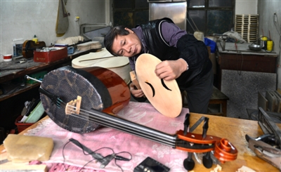 与大提琴比较音量音色,刘正辉制作的革胡毫不逊色。