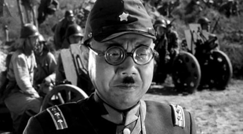 当然,最令人津津乐道的、且与方化的《平原游击队》中日本鬼子松井并驾齐驱的角色,当属王孝忠的一系列日本鬼子形象,像《永不消逝的电波》中的特高科处长中村、《地道战》中的中队长山田、《野火春风斗古城》中的情报顾问多田,还有后来八十年代初期的《一个美国飞行员》中的宪兵队长坂田等等。细数起来这些著名影片中王孝忠的日本鬼子形象,几乎占据了他所有出演角色的二分之一。