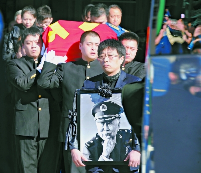今天上午,著名艺术家、空政文工团创作员阎肃同志的追悼会和遗体告别仪式在八宝山革命公墓举行,数千名官兵、群众自发前来送阎老最后一程。 (本报记者 阎彤摄)