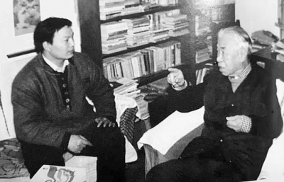 作者樊希安求教公木(右)。一九九〇年摄于长春