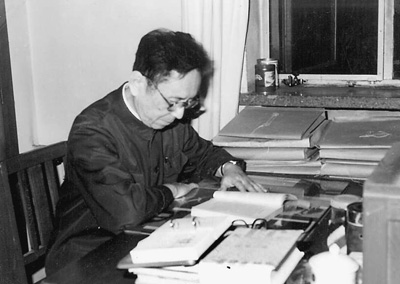 任继愈在中华大藏经编辑室办公室。资料图片