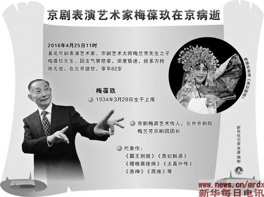 京剧表演艺术家梅葆玖25日11时在北京逝世,享年82岁。