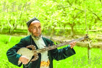 每到奎牙镇、墨玉县的巴扎日,乌布力艾散就会来到巴扎上为乡亲们演唱和弹奏。