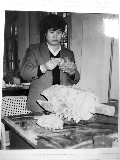 孩子多,吃饭的嘴就多。在物资匮乏的上个世纪六七十年代,冻萝卜和棒子面做的菜团子;老大穿了老二穿、补丁摞补丁的旧衣服是家里孩子的日常。虽然是这样不够吃的状态下,玩依然是孩子最惦记的事儿。除了在胡同里藏猫猫、上树掏鸟下河捞鱼,贾文忠有别家孩子没有的玩具,那是父亲在博物馆复制文物时做坏了的小玩意儿,什么小铜佛、小铜锁、没了尾巴的陶马、缺了腿的陶人都是他把玩的小物件。不上课的时候他也常去中国历史博物馆父亲干活的修复室,看父亲和同事们干活儿,青铜器、陶器的修复,甚至古人头骨的复原,他都饶有兴致地观察,在心里记,回家自己试着做石膏模具。小学的时候,他就会翻模子,自己捏些小泥人、做些小玩意儿,16岁,他已经能做出逼真的铜币、牛尊这样的文物仿制品了。
