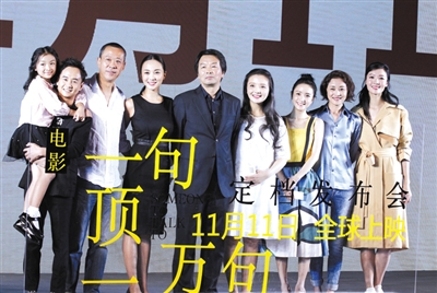 根据刘震云小说改编的同名电影《一句顶一万句》昨日在京宣布定档11月11日,该片由刘震云的女儿刘雨霖执导,江志强监制,原著作者刘震云担任编剧,毛孩、李倩、刘蓓、范伟等主演,刘雨霖透露影片主要改编自小说的后半部分,聚焦在牛爱国和牛爱香这两个人物身上。刘震云当日还现场力挺王宝强,他透露最早本来曾想过邀请王宝强出演。而对于外界质疑王宝强没有文化的声音,刘震云也坚决否认,并感慨他其实文化很深。