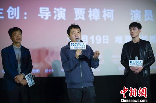 贾樟柯11日现身山西太原,为金砖五国首部合拍片《时间去哪儿了》宣传造势,并与现场影迷合影。 韦亮 摄