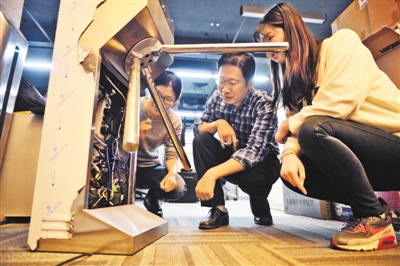 王金桥带领团队研制人脸识别自动闸机。 记者 张昊摄
