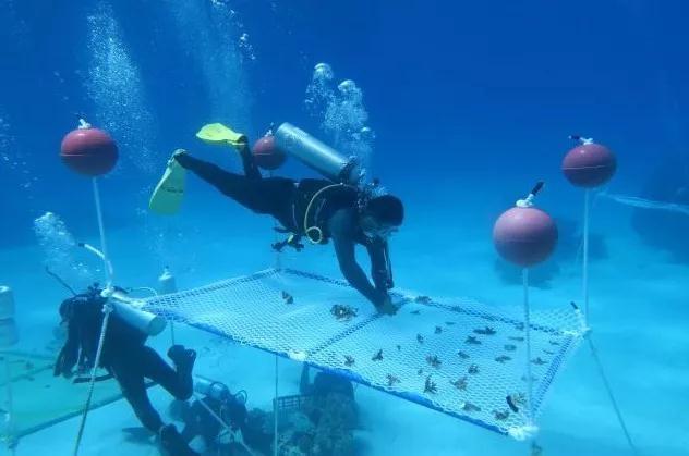自己团队一点点摸索,加上借鉴国外相对成熟的经验,黄晖和同事们开始进行海底植树造林。他们在近海培育珊瑚种苗,等到幼体长大后,再移植到预定海域的人工礁体上。