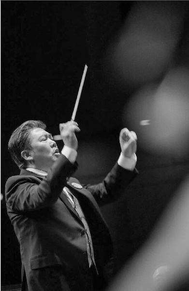 余隆在第20届北京国际音乐节“音乐马拉松”中登台指挥。韩沁君摄