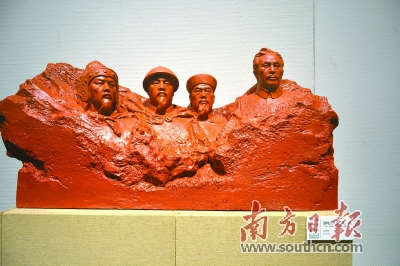 李汉仪为故乡专门创作的雕塑作品《旗峰四英雄》。刘庆扬 摄
