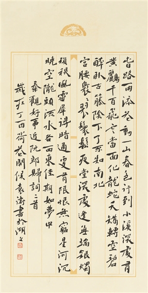 果然,嗣后他就用我难以想象的速度,在短短几天内将那些在我看来庞杂无绪的纸堆全部理好,分门别类,将需要送去展示的近百幅字画装帧完毕。第一次看到他的成果,我甚至吓了一跳:所有的字画都焕然一新,在闪闪发光的镜框里骄傲而安静地,向外面的世界展现出无言的美与生命力。