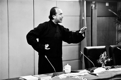 12日上午又是新书首发活动,结束后张先生当即赶到北京青年报社青睐讲座现场,还没来得及寒暄他便自己布置讲台,铺上大红段子的桌围子并插上鲜花清供,立刻让原本刻板的讲桌变得有了古意,换好长袍马褂的张先生更像是从古代穿越而来,引经据典侃侃而谈,史料内容却又讲得生动活泼,兴之所至还吹起笛子清唱起昆曲,大家风范令人如沐春风,让人对昆曲这门艺术更生景仰和亲近之心。