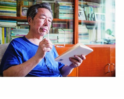 一进门,我便感觉如同回到了二十世纪八十年代,安静简洁,没有华丽的地板瓷砖,灰亮的水泥地,四白落地的白墙,每一样家具似乎都已经有几十年的历史了。尤其引人注目的是客厅五组宽大厚实的书柜,一看便是二十世纪计划经济时代的产物,外观简朴,无任何修饰,但质量可靠、耐用。书柜顶天立地,上下分别是封闭式的书橱,中间五六层玻璃门书架,每一层都里三层外三层摆满了书,书架搁板却没有因为承载太多的书而变得弯曲。除此之外,家中完全看不到任何数字化时代的影子,只有一台小电视摆在角落里。