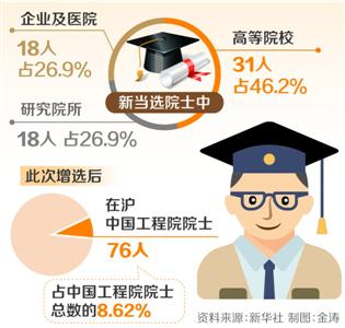 中国工程院2017年院士增选揭晓,在沪中国工程院院士增至76人