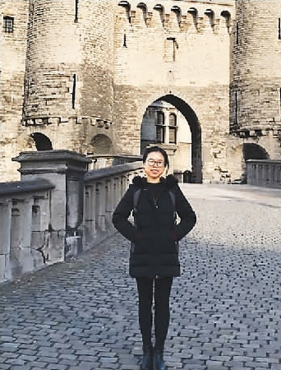 图为黄冰露在比利时北部城市安特卫普。忙碌的学习间隙,她以游玩来放松自己。