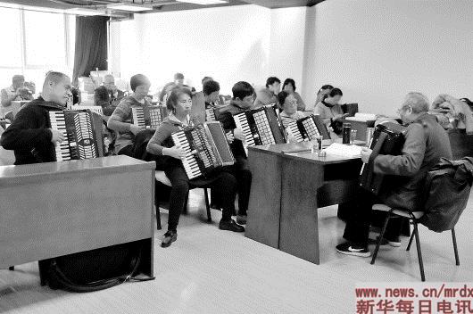 退休后,从忙碌的工作中脱身,任士荣把精力转向了教学。这位手风琴大师收学生的标准极简单,不问基础,不看天赋甚至不收学费:“只要想学,谁都可以,我义务教。”