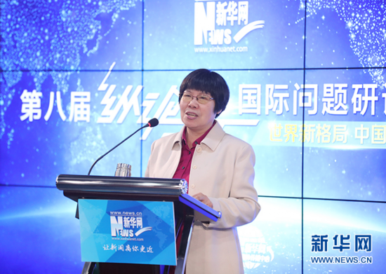 12月26日,新华网第八届“纵论天下”国际问题研讨会成功举行。图为中国现代国际关系研究院研究员陈凤英在主旨演讲。新华网发(郭小天摄)