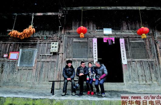 ▼1月6日,罗中立(右一)在重庆城口县岚天乡三河村四组村民家中写生。