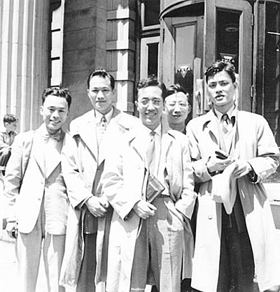 1948年,童志鹏(左一)在美国与朋友们在一起。