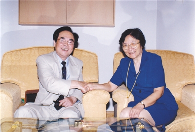 侯云德(左一)与中国工程院院士闻玉梅合影。