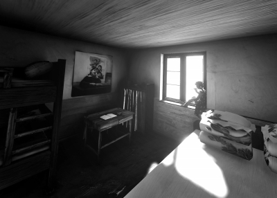 第三个场景,一处更为逼仄的空间,甚至不见有窗,明式架子床,幔帐轻扬,烛影摇曳。忽听门边轻响,走进一位女娘,劳累的一天即将过去,她悄然来到床边,脱下绣鞋,随后一圈圈放开金莲上的裹脚布……置身于这个场景中,我选择了三个位置,第一个是面对大床的烛火旁——探手在火苗上方,却不曾被灼伤(那一刻的感觉是诡异的,有如游魂回到故乡);第二个是幔帐的内侧,那一刻,又恍然变身偷窥的情郎;还有第三个位置,也是最让笔者惊心动魄的位置,女子的床沿正中——直视她一步步走近,近得可以听到呼吸,在快要拥抱我的时候转身坐下,我低头,仿佛灵魂附体,依稀看见“自己的”手一圈圈转动,在卸下那柔软的枷锁。这样的时刻如此奇妙,有如庄生梦蝶,我不知是自己穿越到了明代,还是明代的女子经由我而穿越到了今天,透过虚拟现实的眼镜,窥视当年的自己……同时我很好奇,假如是一位男性观者,当他也站在这同一位置,那么他的那份“惊心动魄”,比起我来,是否又多了一重——他不但穿越了朝代,而且穿越了性别……