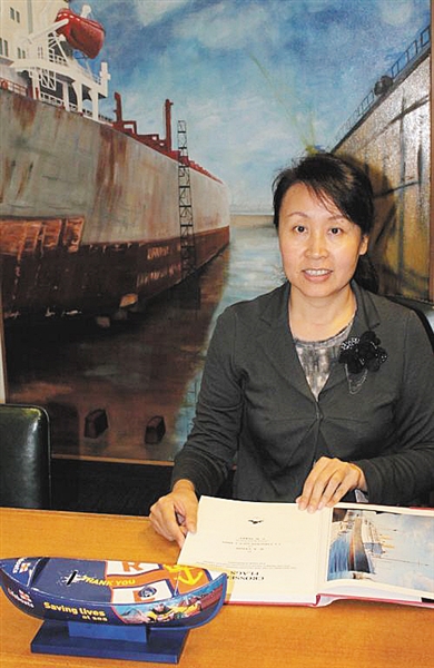 关英华坐在办公室里,她的后侧衣架上是一顶橙色安全帽、一件统一配发的蓝色工装棉上衣;从她身侧的窗口看出去,就能看到建造过首艘国产航母、众多30万吨超大型油船的大坞。