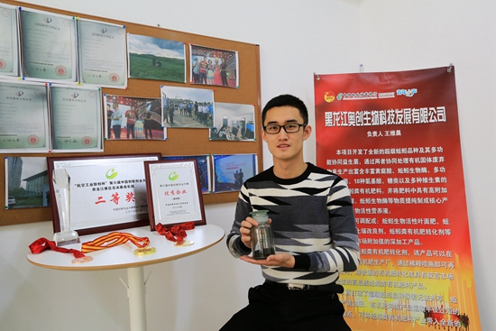 1991年出生的王维晨喜欢美国漫威系列的科幻片,梦想成为科技领域内的“超人”。他要拯救的世界是土地。在东北农业大学读研究生的3年里,他成功研发了“超级蚯蚓”项目,用科学仪器对蚯蚓进行辐射,选取优质变异体的蚯蚓来分解农业废弃物,得到蚯蚓粪并提纯里面的高活性黄腐酸。