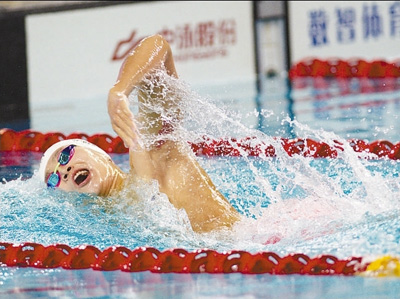 4月15日,浙江队选手孙杨在比赛中。当日,在山西太原进行的2018年全国游泳冠军赛暨亚运会选拔赛男子400米自由泳决赛中,孙杨以3分44秒29的成绩夺冠,这是本次赛事上孙杨继男子200米、男子800米自由泳之后收获的第三项冠军。