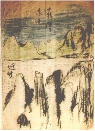 白楼潭远望、近望(沈从文绘,蜡笔画,见1934年1月19日致张兆和信)