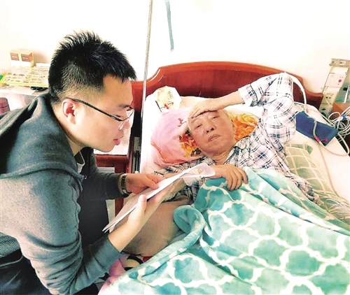 在生命的最后几天,郑德荣还在医院的病床上和学生胡范坤修改论文。当时,郑德荣说话已很困难。 资料图片