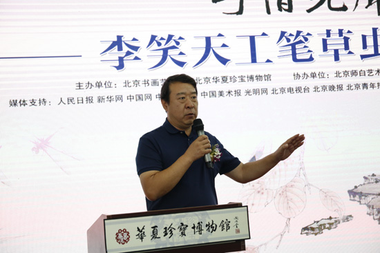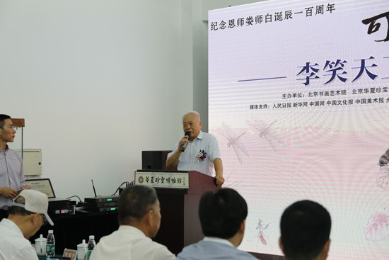 赵树栋认为李笑天的作品具有才气、灵气、正气,从这“三气”中体现了李笑天的创作底气;娄师白之子娄述德先生讲到:“李笑天充分地继承了父亲齐派艺术、娄门艺术的创作风格”;齐白石曾孙齐景山先生从齐派工笔草虫的传承上探讨了李笑天的齐派草虫艺术,赞誉他是齐派第二代弟子中的佼佼者;北京荣宝拍卖公司副总经理左安平先生则从拍卖的角度深入分析了李笑天作品的市场价值和收藏价值。