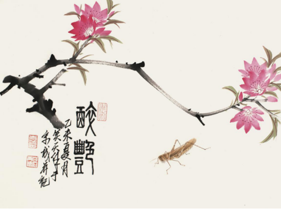 草虫画是中国传统花鸟画的重要分支,以草虫为主题,配以花卉或瓜果,形成一幅完整的中国画。现代著名画家齐白石将草虫画推至前所未有的高度。他独创“兼工带写”的画法,将浓墨重彩的大写意与细致入微的精细描写完美结合,把草虫画到最工、最细,同时把配景画得老辣、写意,用配景的“粗”来进一步烘托草虫的“细”,从而达到了极强的艺术效果。在历代画家的笔下,草虫仅是花草的点缀,而在齐白石的画中,草虫虽与真虫大小无异,却成为真正的主角与视觉中心。