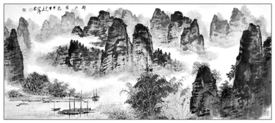 初闻张守涛还是在一些报道和杂志上,只知道他是著名画家,有些陌生,大概是同大师的距离感罢了。那时对先生最深的印象来自于那幅《漓江清秀》,众山之间雾满漓江,轻舟远去白鹭南飞,好一派虚实相生的清秀景象。久而久之,也就对先生产生了兴趣。后来才了解到,张先生是著名文学家张爱玲的侄孙,并且曾师从山水大师胡佩衡先生。这一系列名头不得了,可终归不实,走不进一个真实的张守涛,直到我最近翻阅了先生的文集《守涛说画》,方才加深了对先生的了解。