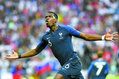 比赛第59分钟,法国队6号博格巴后场长传右路找到姆巴佩,后者传球至点球点附近,格列兹曼回做,博格巴赶到禁区弧顶处直接起脚,第一次射门被挡出,他跟进补射得手。