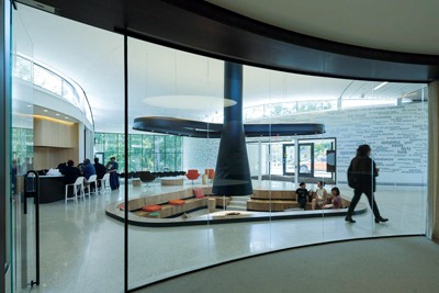 注重关系建构设计的理念在珍妮·甘的另外一个项目中体现得更为突出,这就是她为密歇根州卡拉马祖学院设计的社会正义领导中心。她在该建筑的中央空间里设计了一个让人可以环坐一圈的圆形空间。这个空间中有壁炉、厨房以及圆形长椅,这样既可用于社交聚会,也可以进行一对一的谈话。这样的设计营造了一种家居般亲切的环境氛围,有助于打破人与人之间的心理障碍,鼓励人们更多交流。