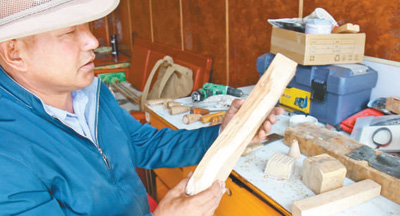 西藏林芝盛产的硬木,桑木、核桃木,都是制作毕秀的木料。“上好的毕秀要选用木纹整齐精美、木质紧实的料,这样射击的过程中才不会裂开。”巴鲁对选料尤为苛刻、讲究,木料必须是树干上经过庇荫风干的部分,不能使用树枝产出的木料。