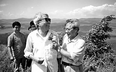 1995年,张忠培(右二)与黄景略(右一)在黑龙江考古工地。