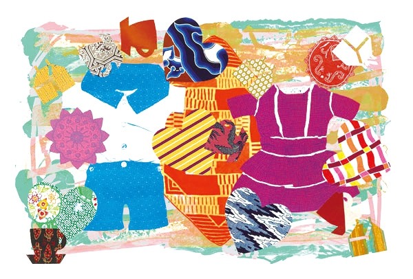 随后,夏皮罗发明了由花边、围裙、手帕和织物等与女性日常生活有关的材料组成的“女性拼贴”,并将这一艺术形式理论化,她也因此被视为美国图样与装饰运动的代表。她通过图样来表达女性的“意识”,经常使用扇形、心形及其他带有女性特质的图案,复杂的纹理和丰富的色彩传达出她的情感和欲望、焦虑与希望。她还通过挪用以往女艺术家的作品创造了“协作系列”,例如贝尔特·摩里索、玛丽·卡萨特和弗里达·卡罗等人的作品。