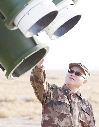 野战火箭发射前,韩珺礼在试验现场进行指导。 陈海强摄