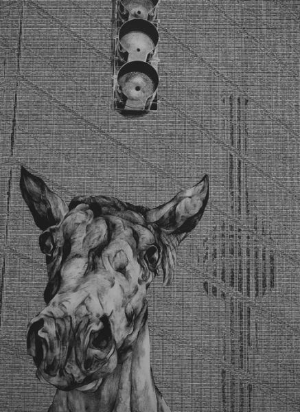 曹琼德创作的《甲骨文》系列之一,也代表着他的一种追忆。 随着城市的发展变迁,贵阳一些古建筑被推倒,上世纪90年代被拆除万家祠堂就是其中之一。曹琼德路过拆迁现场看到这样一座古色古香的建筑即将不复存在,心里十分难受。在拆掉的万家祠堂废墟中,曹琼德收集了很多古砖,每一块砖上都有文字,也成了曹琼德创作《万家祠》和《甲骨文》系列的灵感和动机。