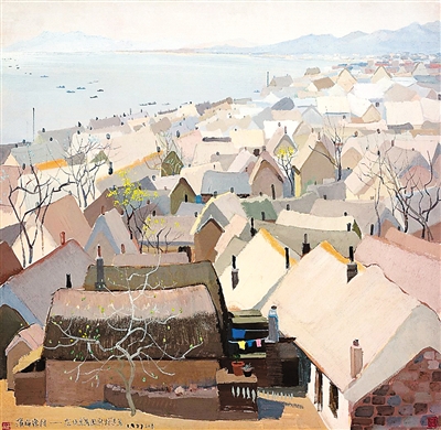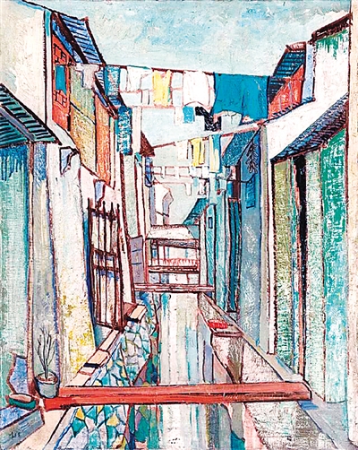 第一部分主要展示了袁运甫的西画创作。上世纪50年代,中国艺术家面临的最大问题是如何使艺术参与到社会的剧烈变革中。袁运甫选择到生活中绘画,并从欧洲印象主义、后印象主义、现代主义艺术中研习艺术表现规律。上世纪70年代初,袁运甫在河北获鹿县农村务农,其间画了大量的写生作品,如《猪市》《井》等,从科学的光影入手,又融合了中国年画、敦煌壁画以主观色彩为特征的表现方法,展现出深具中国本土乡情和人文情感的西洋水粉画作。这是袁运甫水粉画创作的成熟期。