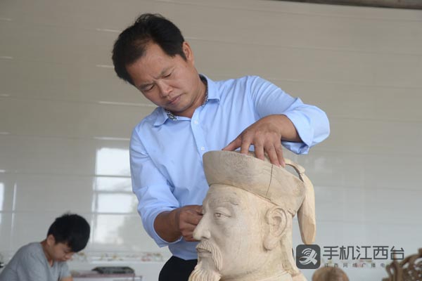 “傩雕的选材基本都是樟木,因为樟木防虫,并有‘纳财’的寓意。此外,所有工序里面最难的就是精雕。”彭国龙说,有时候为了雕好龙王嘴里的一颗圆球,需要耗费好几天的时间。因此,急性子的人干不了傩雕的活。