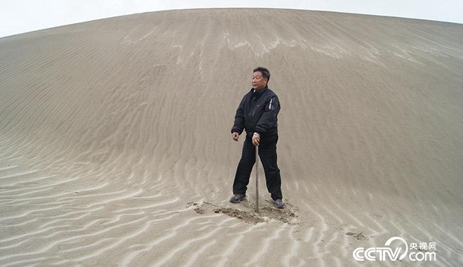 2013年4月开始探索用菌草治理流沙,现取得了系列的国际领先成果,为黄河生态安全屏障建设提供科学依据和适用技术。林教授在阿拉善菌草治沙现场。