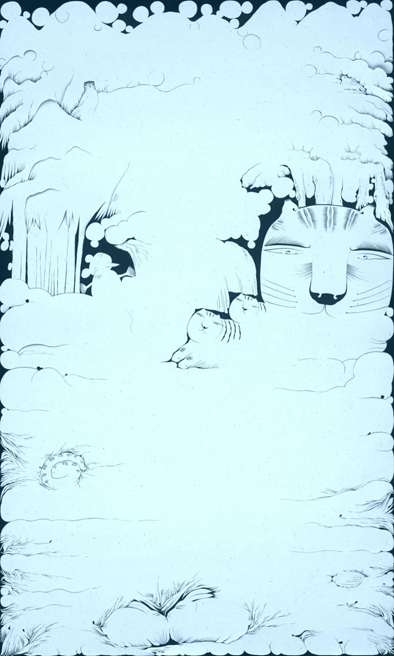 在纸面那方“宇宙”中,俗与雅、东方与西方、欢快与节制之间有一种平衡。比如,在他的代表作《四季歌》中,逾5米的巨幅彩纸上,密林繁茂,自然空灵而诡谲,但藏匿其间的动植物却连接了山海与四季,回归了人间的烟火。