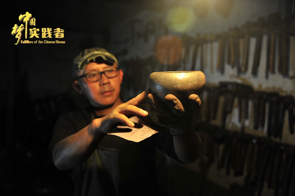 初心在方寸,咫尺铸匠心。从云南辗转到北京,从“北漂画家”转型成为“深巷铁匠”, 蔡德全的匠人梦想正在一锤一锤间夯实成型。他笑着说:“虽然辛苦,但我喜欢这种脚踏实地的感觉。”