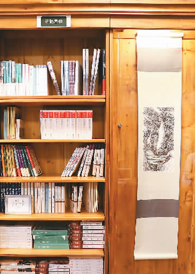 池上书局中专门放置蒋勋作品的书架旁,挂着一幅蒋勋的画作。