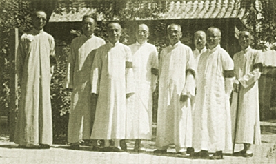 图为1936年章太炎追悼会合影,右二钱玄同,右三为周作人